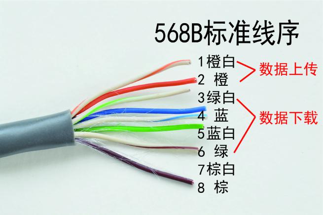 而我们一般使用的都是两种不同设备之间的互连,那么我们就要采用直通线。直通线的两端都是568B标准